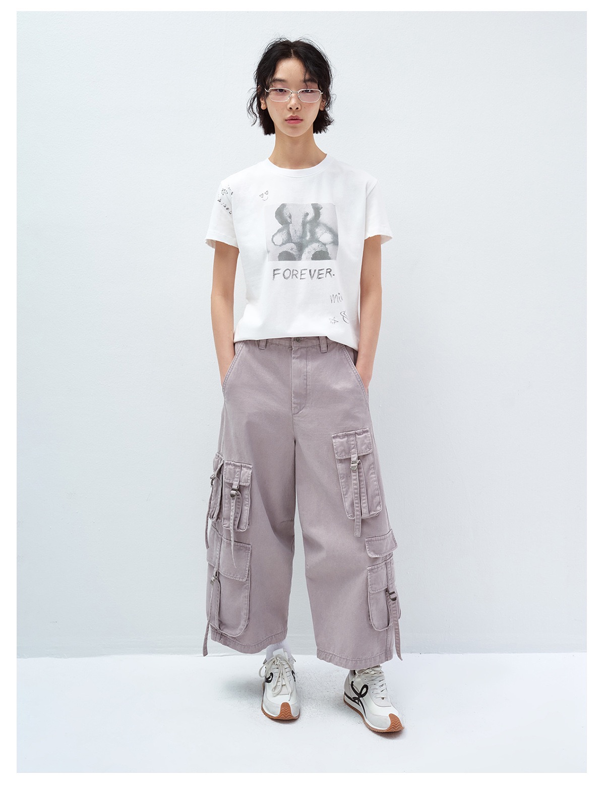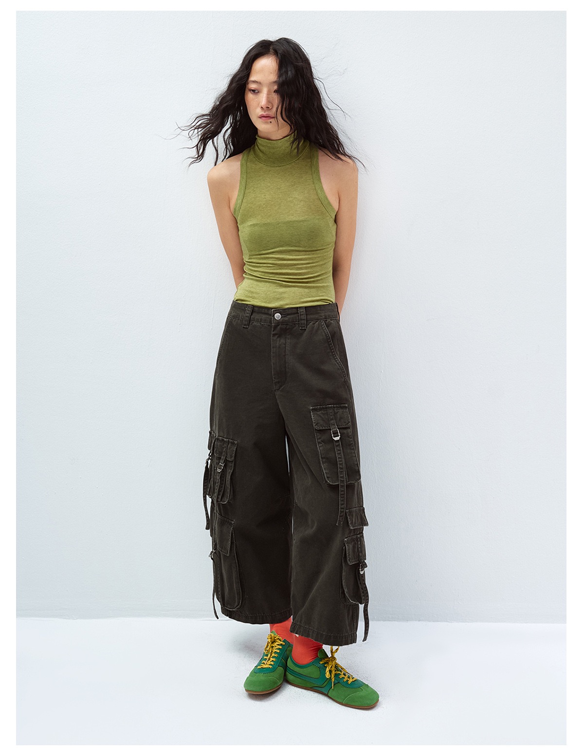Model:(1)170cm,48kg,M、(2)173cm,49kg,M