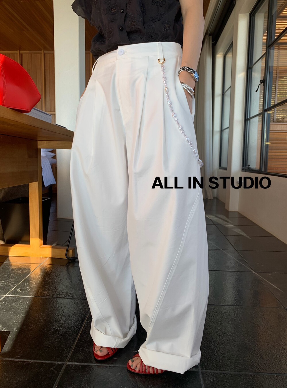 Fabric:錦綸 - Color:深藍、黑、白 - ***此廠商無平量尺寸,S/M/L腰圍分別落在66/68/70左右 ***賣場皆採預購制,下單後約需等10-30日左右,再請大家耐心等候***Model體重較輕,褲子穿起來會像低腰的感覺,實際版型大約都是中腰唷!