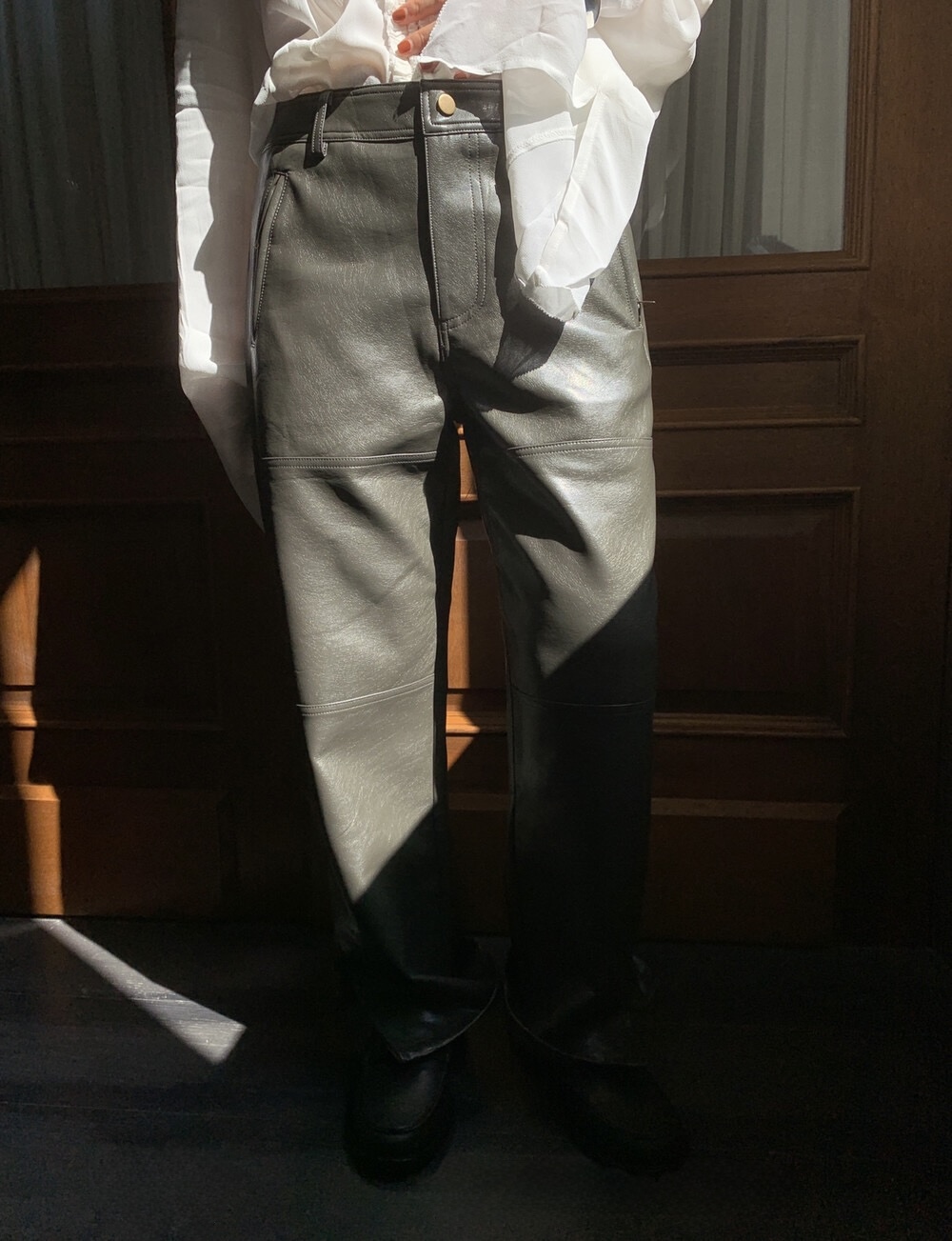 Fabric:PU - Color:軍綠、黑 - ***此廠商無平量尺寸,S/M/L腰圍分別落在66/68/70左右 ***賣場皆採預購制,下單後約需等10-30日左右,再請大家耐心等候😍 ***Model體重較輕,褲子穿起來會像低腰的感覺,實際版型大約都是中腰唷!