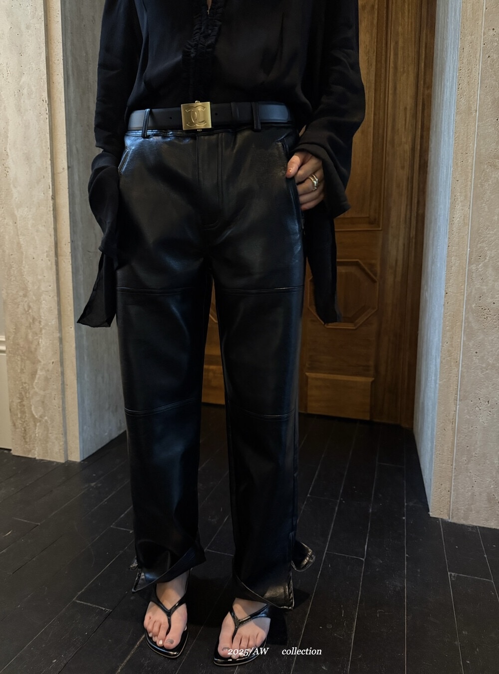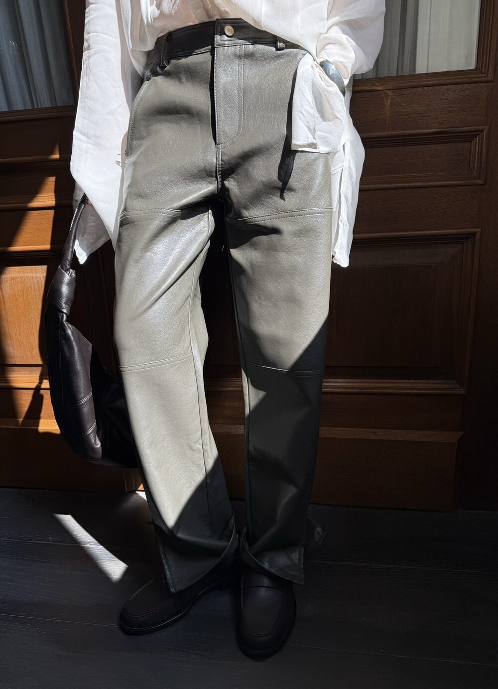 PU皮褲、九分小直筒、側開衩