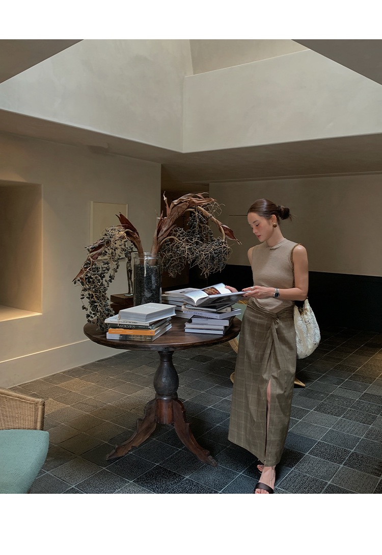 Color:咖、黑 - Fabric 黑:67%滌綸、24%人棉、7%羊毛、2%氨綸 咖:61%滌綸、27%人棉、8%羊毛、4%氨綸 - Size S:腰圍70、裙長89 M:腰圍74、裙長90 ***此款皆採預購制,下單後約需等10-30日左右,再請大家耐心等候