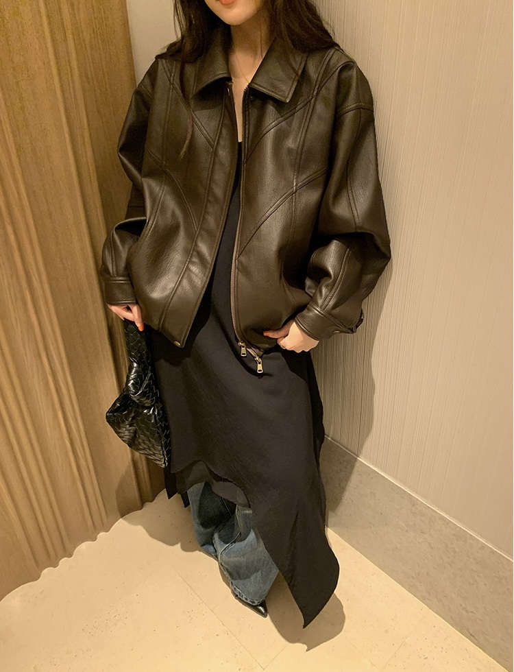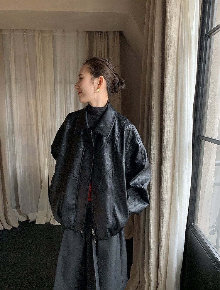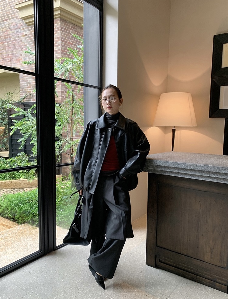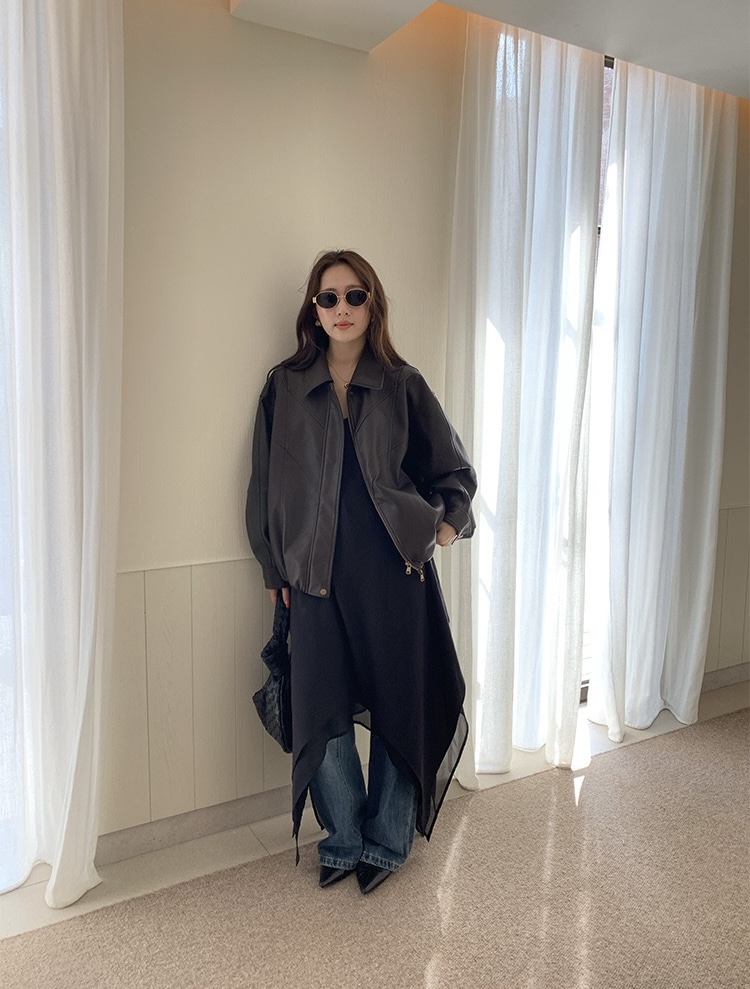 Fabric:70%PU、21%海島絲、9%聚酯纖維 - Color:黑、花崗岩灰、咖 - Size:肩寬58、胸圍150、袖長55.5、66衣長 ***賣場皆採預購制,下單後約需等10-30日左右,再請大家耐心等候😍