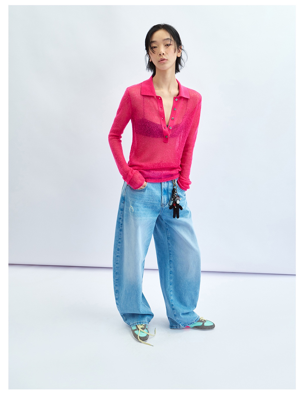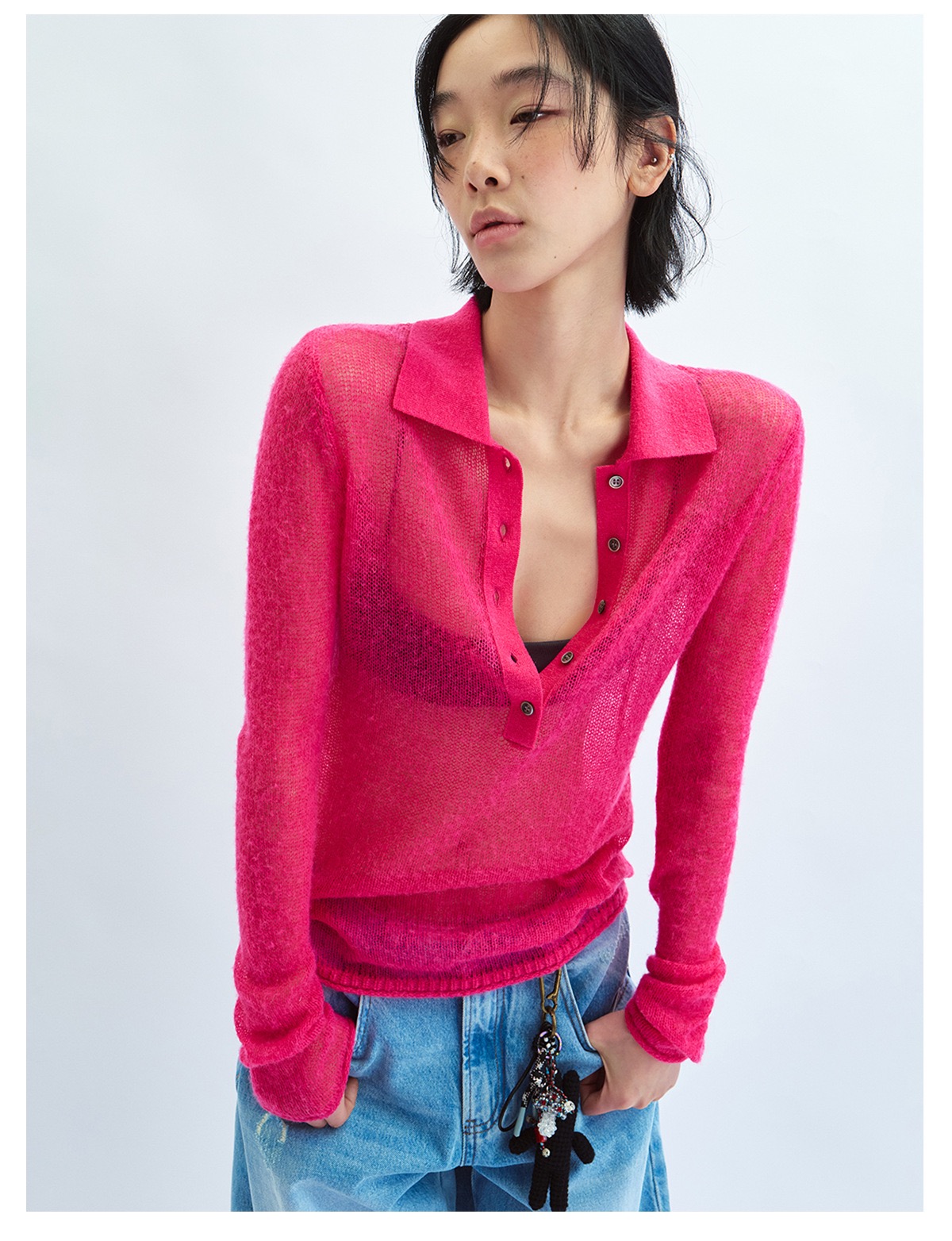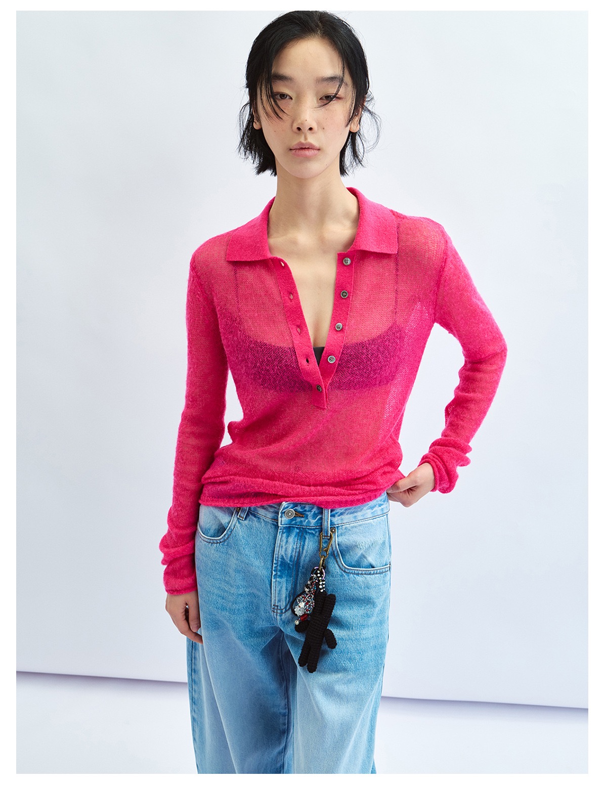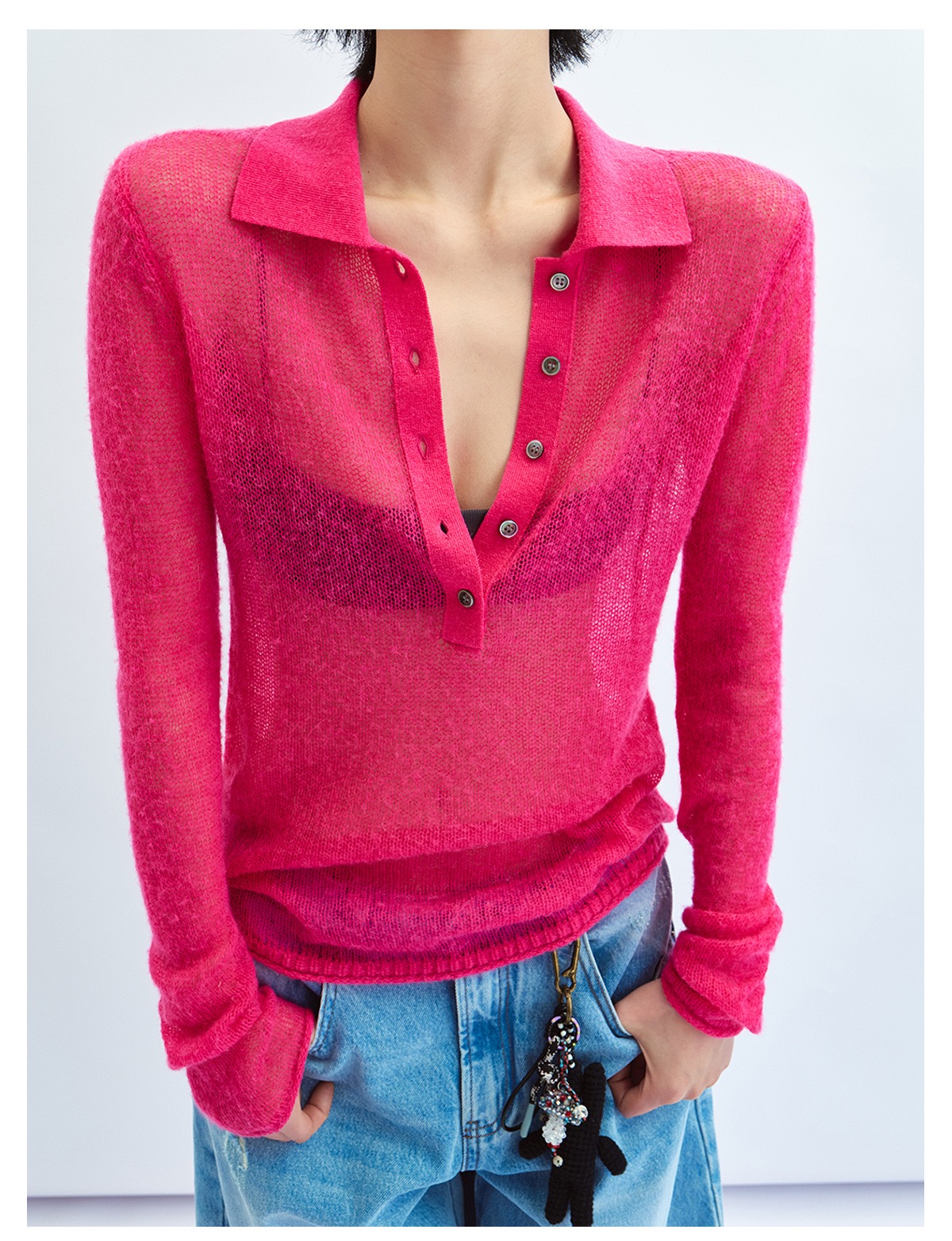 這款的粉色搭配牛仔褲整體顏色亮眼又顯皮膚白!
