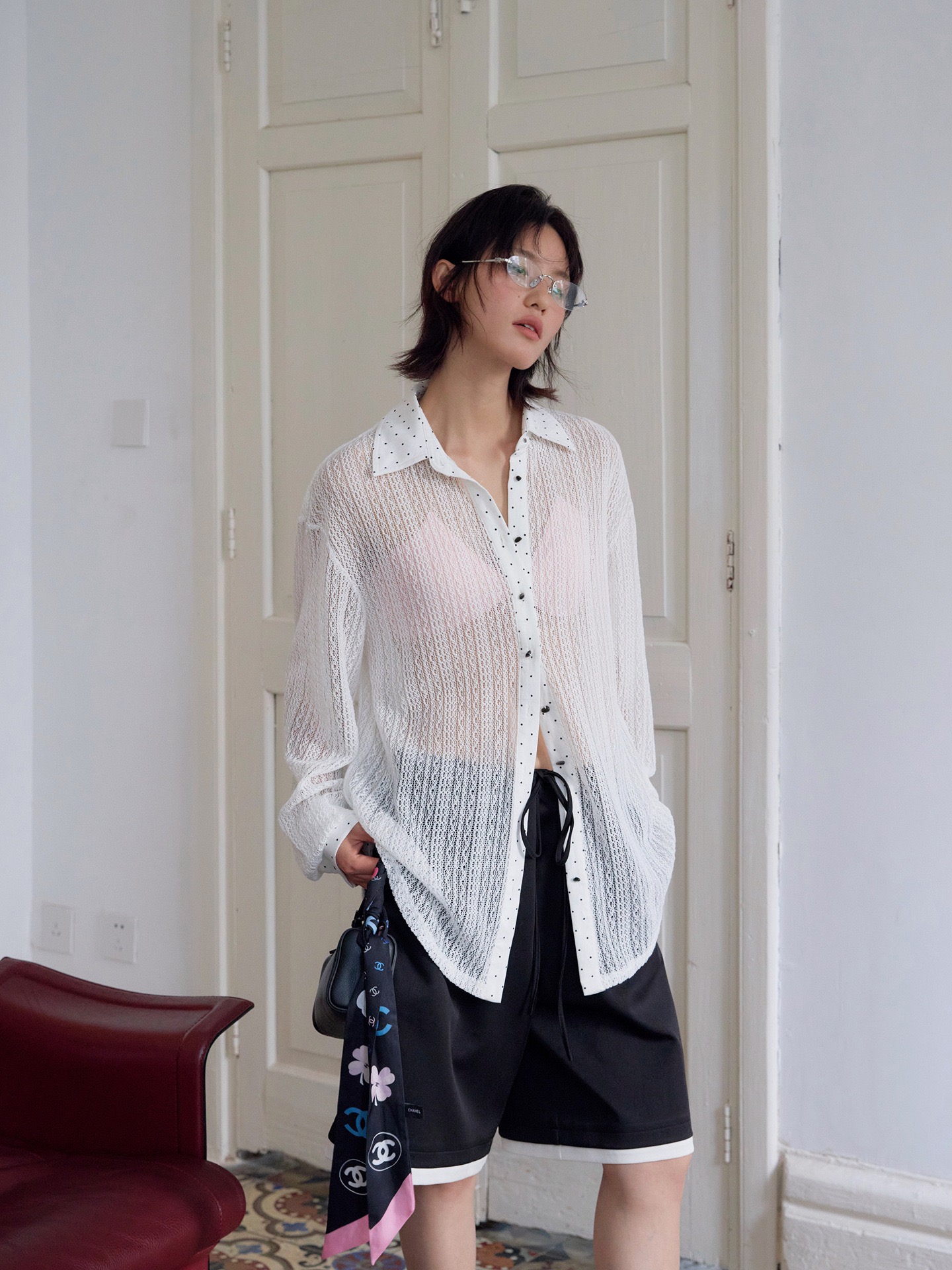 整件蕾絲的襯衫不多