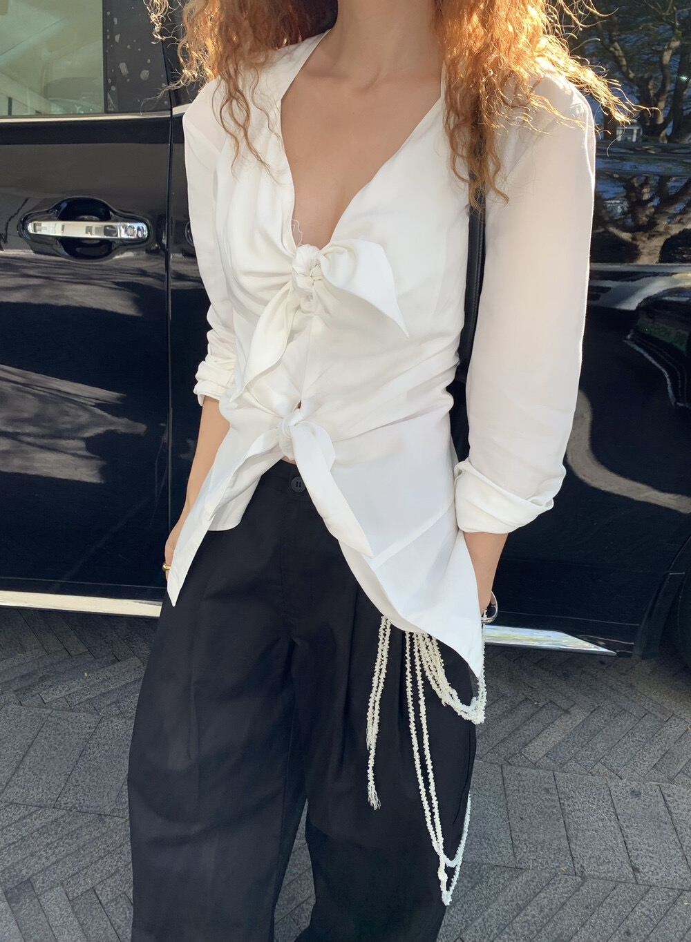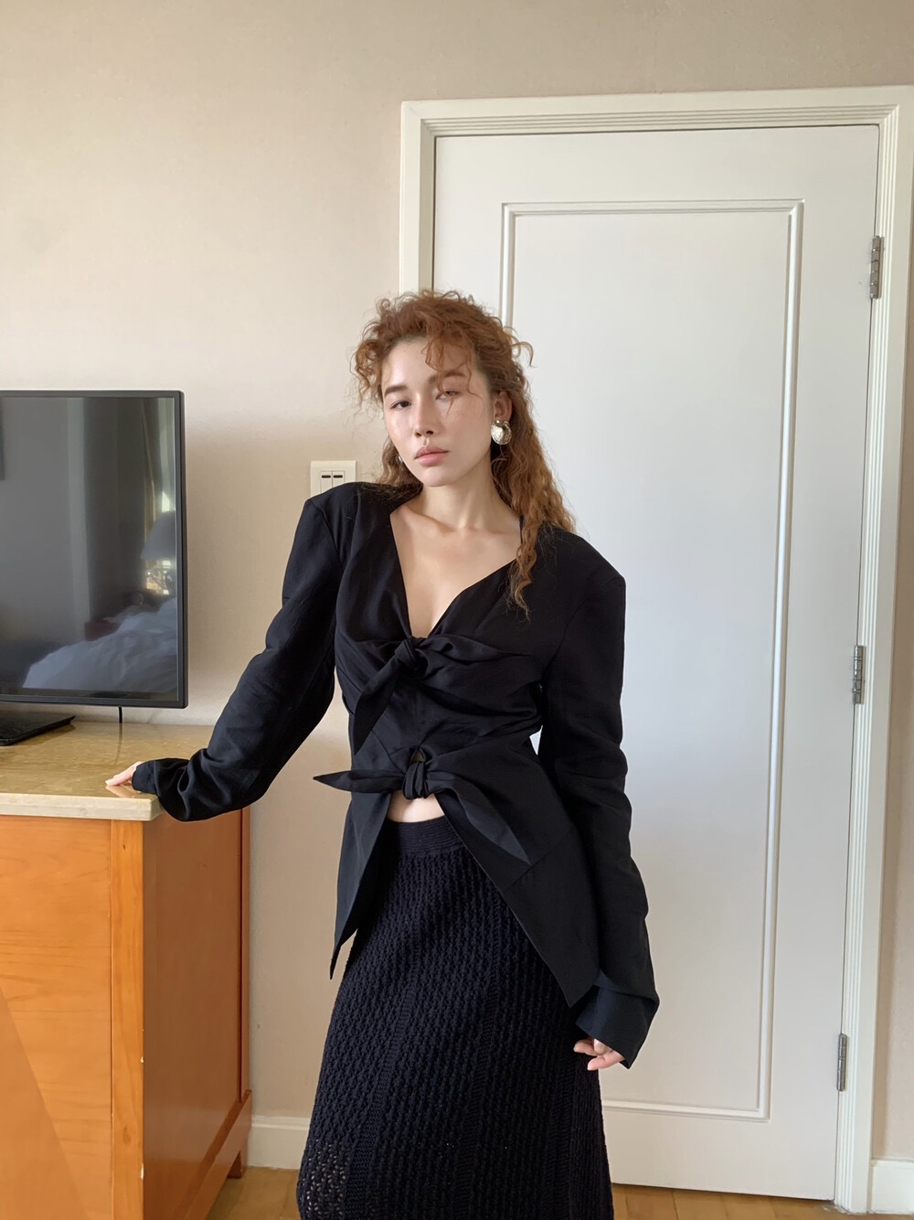 設計款|立體扭結|V領